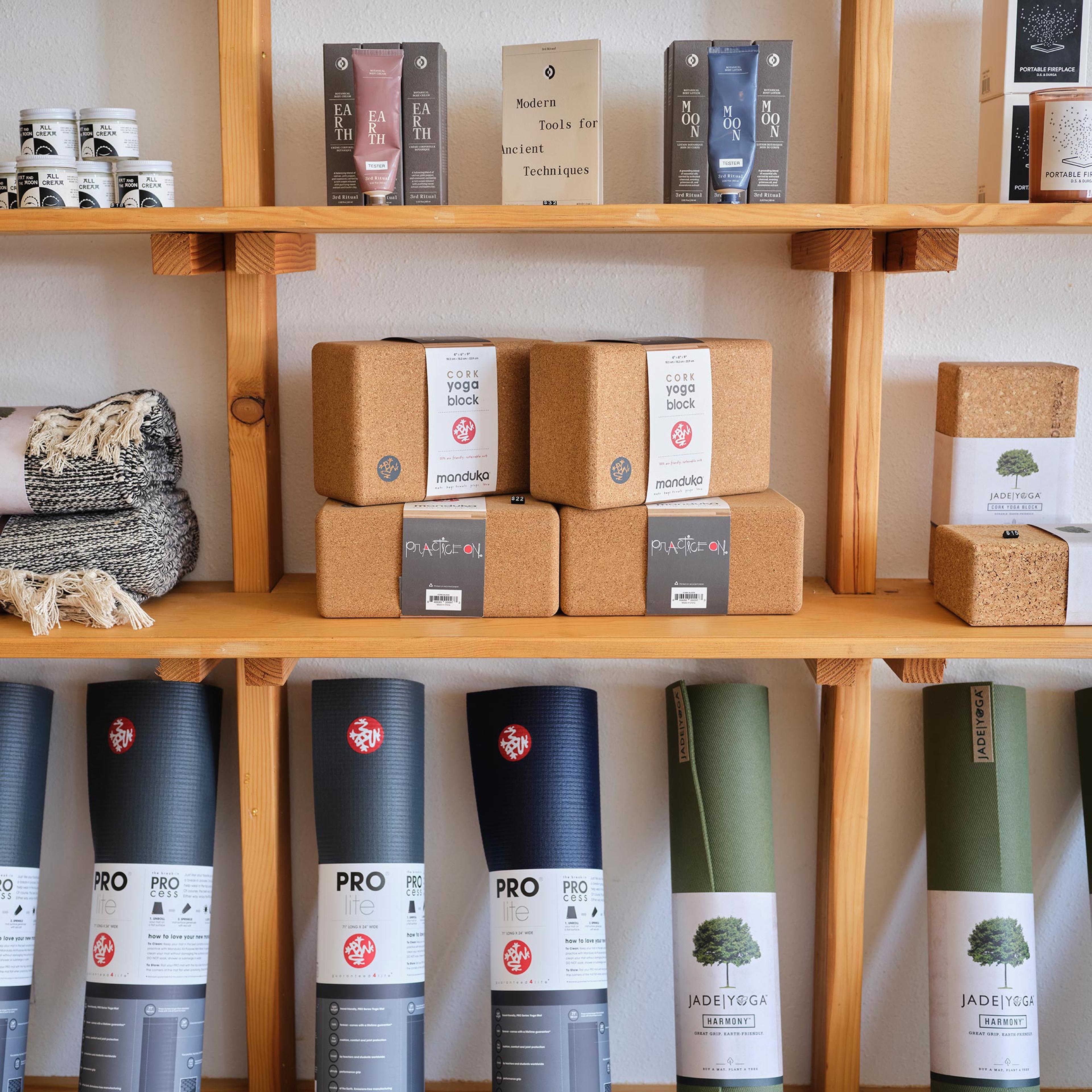 Browse our shop next time you stop by for class. We carry a variety of yoga props, candles, incense, body care and ayurvedic products to support your practice.